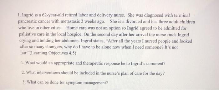 Solved 1 Ingrid Is A 62 Year Old Retired Labor And Delivery Chegg Com